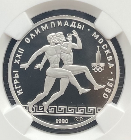 Платиновая монета 150 рублей "Античные бегуны" 1980г. ЛМД в слабе NGC PROOF 70 ULTRA CAMEO