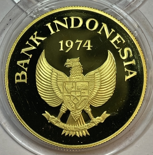 Золотая монета 100 000 рупий "Комодорский варан" 1974г., Au 900, 33,44г., Индонезия