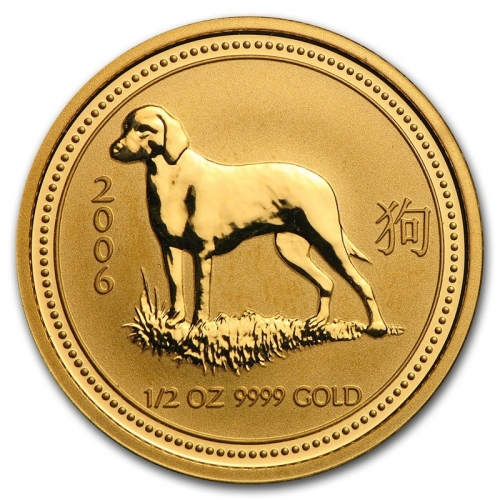 Золотая монета 50 долларов "Лунный календарь 1 - Год Собаки" 2006 год 1/2 унции