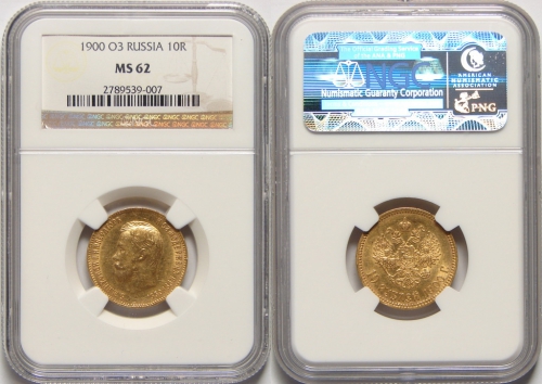 Вы всегда можете купить или продать, а также узнать текущую стоимость монеты - 'Золотая монета Николая II 10 рублей 1900 год состояние MS 62' в г.Грозный (Чечня). У нас Вы получите полную и необходимую консультация от квалифицированных специалистов и профессионалов, работающих на рынке инвестиций в драгметаллы уже долгое время. Мы стараемся предложить нашим клиентам лучшие цены выкупа и продажи на рынке (с минимальным спредом), а также гарантируем конфиденциальность всех проводимых сделок.